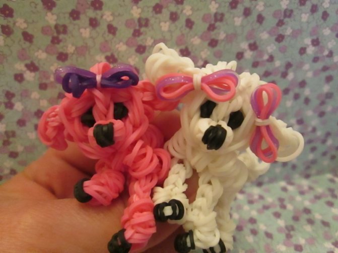 Схемы, которые хочется вам представить, достаточно просты. Давайте сейчас вместе рассмотрим, как плести животных из резинок без станка и попробуем сделать следующие фигурки: