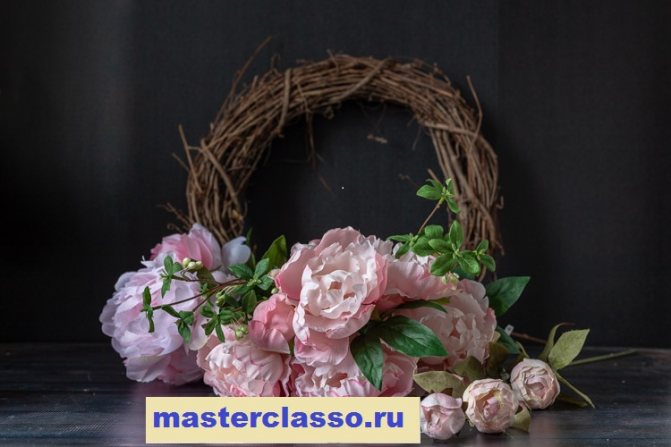 Свежие цветы, безусловно, самые красивые, однако искусственные также смотрятся очаровательно. Поэтому, если у вас нет в наличии свежих или высушенных пионов, вы вполне можете заменить их искусственными. Венок из такого материала смотрится вполне презентабельно, к тому же он очень легкий в изготовлении!