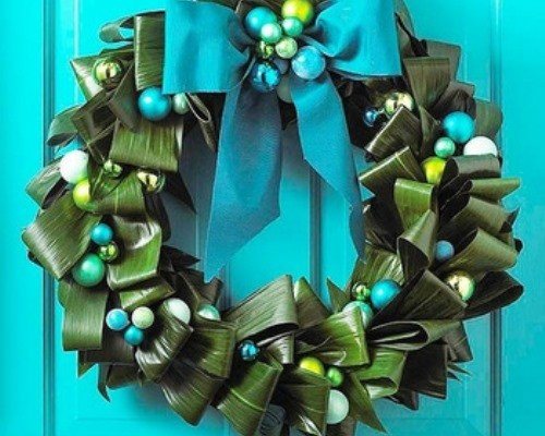 Ниже мы представим фотографии венков из искусственных материалов. Расписывать технику изготовления не целесообразно, потому что она ничем не отличается от той, которую мы рекомендовали использовать для создания венков из природных материалов.