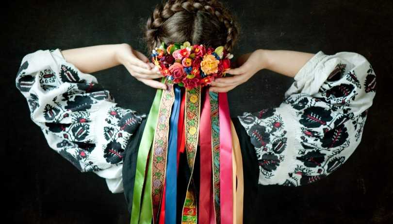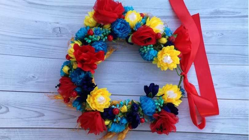 Для создания этнического образа на Украине используют венок украинский с лентами. Он выглядит очень броско и необычно. Не каждая модница решится носить такой в повседневной жизни или на работу, но с ним с лёгкостью можно отправиться на тематическое мероприятие. На праздник Дня Независимости в Киеве – мега удачно.