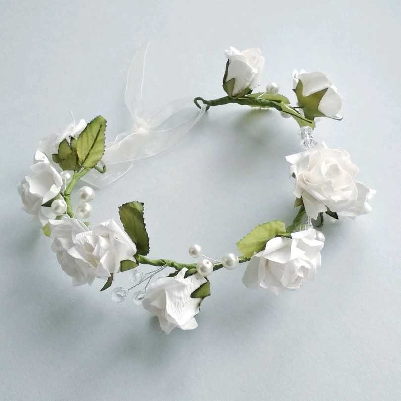 - Если торжество должно пройти в холодное время года, то можно купить живые цветы в магазине. Др. вариант — сделать венок из искусственных. Это могут быть имитации из полимерной глины, ткани, холодного фарфора.