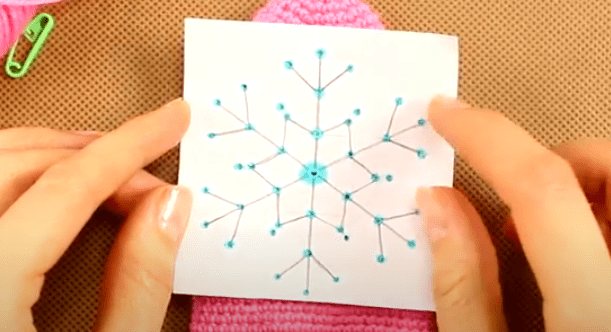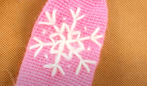 Вышивка снежинки на варежках