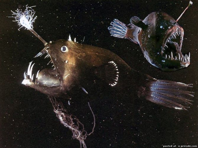Когда смотришь на морского черта, сразу бросается в глаза наличие выроста на голове со светящимся кончиком перед уродливым ртом, так называемого «удочкой» за их форменное сходство.