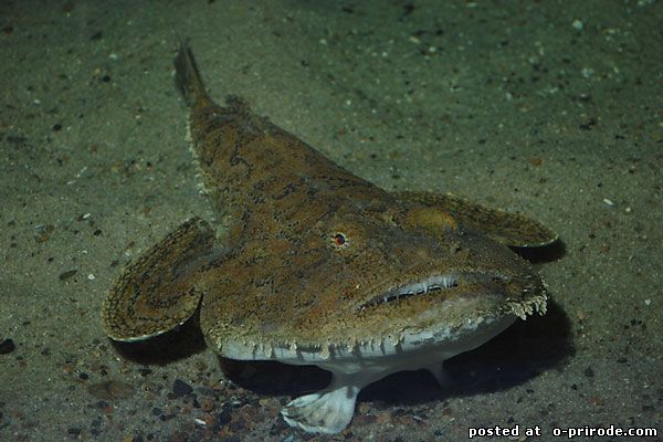 Туловище приплюснутое, сжатое в спинно-брюшном направлении. Голова плоская, широкая, сплющенная сверху, составляет примерно две трети от длины всего тела. Рот большой, в форме полукруга с выступающей вперёд нижней челюстью и острыми крючковатыми зубами. Глаза маленькие. Жаберные отверстия имеют вид двух маленьких щелей, находящихся сразу за грудными плавниками. Мягкая кожа без чешуи; многочисленная кожная бахрома по краю туловища.
